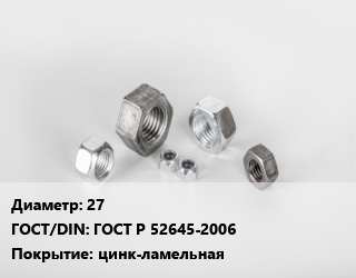 Гайка 27 ГОСТ Р 52645-2006 цинк-ламельная
