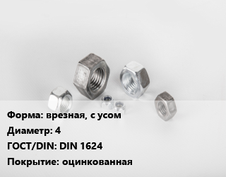 Гайка врезная, с усом D=4 DIN 1624 оцинкованная