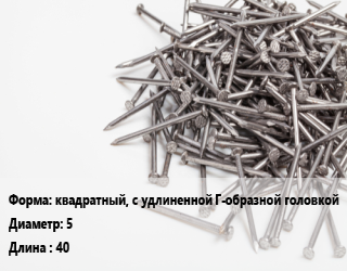 Гвоздь квадратный, с удлиненной Г-образной головкой 5х40 белый цинк, чертеж 7811-7111, кг цена от 81.09 ₽ / кг, где купить, условия доставки в Самаре и Самарской области