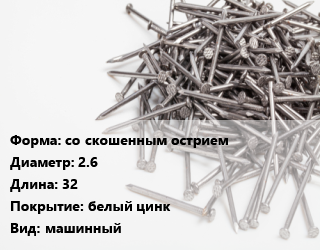 Гвоздь со скошенным острием 2.6х32 белый цинк машинный