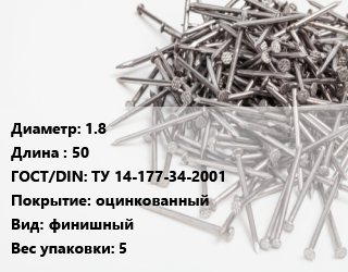 Гвоздь 1.8х50 ГОСТ: ТУ 14-177-34-2001 оцинкованный финишный 5