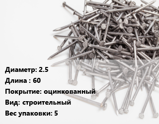 Гвоздь 2.5х60 оцинкованный строительный 5