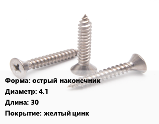 Саморез острый наконечник D=4.1 L=30 желтый цинк
