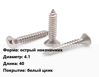 Саморез острый наконечник D=4.1 L=40 белый цинк