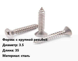 Саморез с крупной резьбой D=3.5 L=35 сталь, упаковка 15 кг цена от 1 845 ₽ / кг, где купить, условия доставки в Самаре и Самарской области