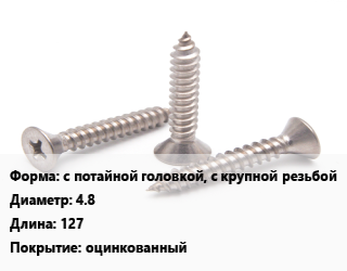 Саморез с потайной головкой, с крупной резьбой D=4.8 L=127 оцинкованный