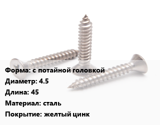 Саморез с потайной головкой D=4.5 L=45 сталь желтый цинк
