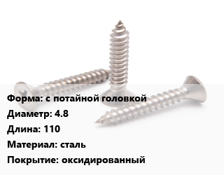 Саморез с потайной головкой D=4.8 L=110 сталь оксидированный, шт, для гипсокартона, для дерева цена от 4.14 ₽ / кг, где купить, условия доставки в Самаре и Самарской области