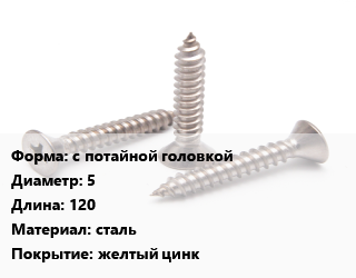 Саморез с потайной головкой D=5 L=120 сталь желтый цинк, упаковка 1000 шт, для дерева цена от 2 288 ₽ / кг, где купить, условия доставки в Самаре и Самарской области
