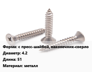 Саморез с пресс-шайбой, наконечник-сверло D=4.2 L=51 металл, кг, для металла цена от 341.43 ₽ / кг, где купить, условия доставки в Самаре и Самарской области
