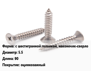 Саморез с шестигранной головкой, наконечик-сверло D=5.5 L=90 оцинкованный