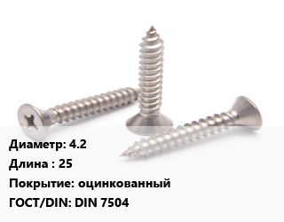 Саморез 4.2 L=25 оцинкованный ГОСТ: DIN 7504