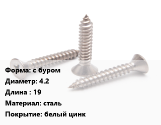 Саморез с буром D=4.2 L=19 сталь белый цинк, упаковка 35 шт цена от 60.3 ₽ / кг, где купить, условия доставки в Самаре и Самарской области