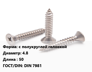 Саморез с полукруглой головкой D=4.8 L=50 ГОСТ: DIN 7981