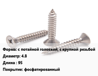 Саморез с потайной головкой, с крупной резьбой D=4.8 L=95 фосфатированный