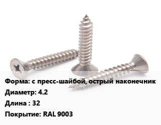 Саморез с пресс-шайбой, острый наконечник D=4.2 L=32 RAL 9003