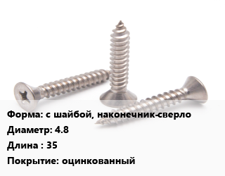 Саморез с шайбой, наконечник-сверло D=4.8 L=35 оцинкованный