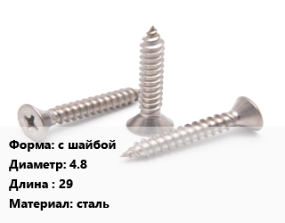 Саморез с шайбой D=4.8 L=29 сталь, упаковка 600 шт цена от 456.98 ₽ / кг, где купить, условия доставки в Самаре и Самарской области