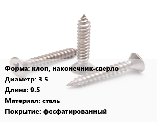 Саморез клоп, наконечник-сверло D=3.5 L=9.5 сталь фосфатированный, упаковка 1000 шт, для металла цена от 627.72 ₽ / кг, где купить, условия доставки в Самаре и Самарской области