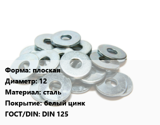 Шайба плоская D=12 сталь белый цинк ГОСТ: DIN 125