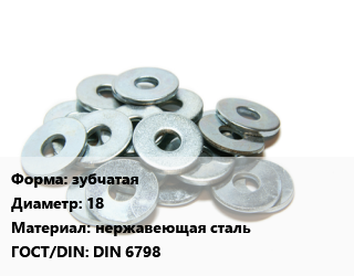 Шайба зубчатая D=18 нержавеющая сталь ГОСТ: DIN 6798, шт цена от 18.9 ₽ / кг, где купить, условия доставки в Самаре и Самарской области