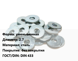 Шайба уменьшенная D=2.7 сталь без покрытия ГОСТ: DIN 433, шт цена По запросу где купить, условия доставки в Самаре и Самарской области