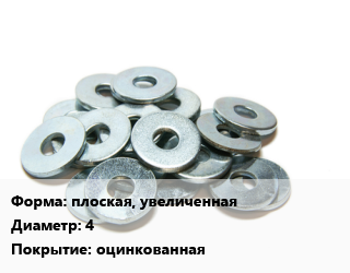 Шайба плоская, увеличенная D=4 оцинкованная, кг цена от 214.78 ₽ / кг, где купить, условия доставки в Самаре и Самарской области