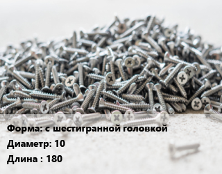 Шуруп с шестигранной головкой 10х180 сталь оцинкованный ГОСТ: DIN 571