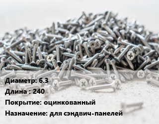 Шуруп 6.3х240 оцинкованный для сэндвич-панелей, упаковка 1000 шт цена от 15 093 ₽ / кг, где купить, условия доставки в Самаре и Самарской области