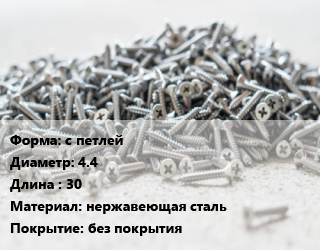 Шуруп с петлей 4.4х30 нержавеющая сталь без покрытия, шт цена от 223.56 ₽ / кг, где купить, условия доставки в Самаре и Самарской области