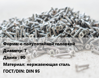Шуруп с полупотайной головкой 7х90 нержавеющая сталь ГОСТ: DIN 95, шт, А4 цена от 309.27 ₽ / кг, где купить, условия доставки в Самаре и Самарской области