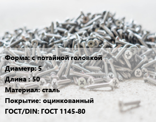 Шуруп с потайной головкой 5х50 сталь оцинкованный ГОСТ: ГОСТ 1145-80