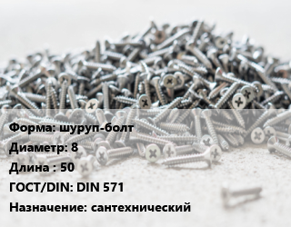 Шуруп шуруп-болт 8х50 ГОСТ: DIN 571 сантехнический, шт цена от 5.4 ₽ / кг, где купить, условия доставки в Самаре и Самарской области