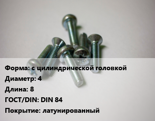 Винт с цилиндрической головкой 4х8 DIN 84 латунированный