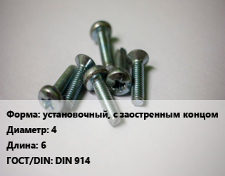 Винт установочный, с заостренным концом 4х6 DIN 914, 12.9, цена за шт, кг цена По запросу где купить, условия доставки в Самаре и Самарской области