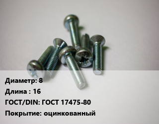 Винт 8х16 ГОСТ 17475-80 оцинкованный