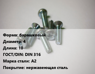 Винт барашковый 4х10 DIN 316 Сталь: А2 нержавеющая сталь, цена за шт, кг цена от 50.4 ₽ / кг, где купить, условия доставки в Самаре и Самарской области