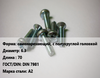 Винт самонарезающий, с полукруглой головкой 6.3х70 DIN 7981 Сталь: А2, по запросу, кг цена от 2 632 ₽ / кг, где купить, условия доставки в Самаре и Самарской области