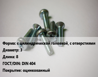 Винт с цилиндрической головкой, с отверстиями 3х8 DIN 404 оцинкованный, 5.8, цена за шт, кг цена от 79.2 ₽ / кг, где купить, условия доставки в Самаре и Самарской области