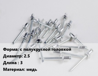 Заклепка с полукруглой головкой 2.5х3 медь