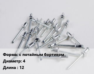 Заклепка с потайным бортиком 4х12 нержавеющая сталь, шт цена от 127.81 ₽ / шт, где купить, условия доставки в Самаре и Самарской области