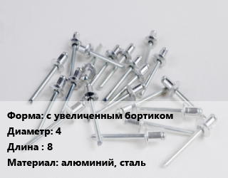 Заклепка с увеличенным бортиком 4х8 алюминий, сталь, шт, тяговая цена от 119.45 ₽ / шт, где купить, условия доставки в Самаре и Самарской области