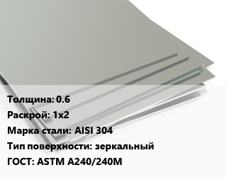 Лист нержавеющий 0.6 1х2 Сталь: AISI 304 Тип:зеркальный ASTM А240/240М