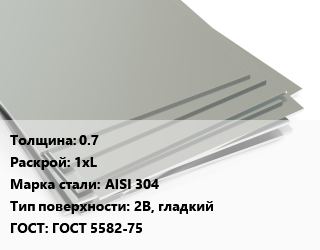 Лист нержавеющий 0.7 1хL Сталь: AISI 304 Тип:2B, гладкий ГОСТ 5582-75, по запросу цена от 305 782 ₽ / т, где купить, условия доставки в Самаре и Самарской области