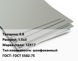 Лист нержавеющий 0.8 1.5х3 Сталь: 12Х17 Тип:шлифованный ГОСТ 5582-75