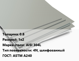 Лист нержавеющий 0.8 1х2 Сталь: AISI 304L Тип:4N, шлифованный ASTM A240