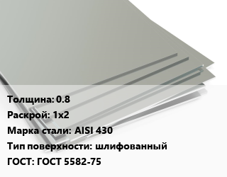 Лист нержавеющий 0.8 1х2 Сталь: AISI 430 Тип:шлифованный ГОСТ 5582-75, х/к, по запросу,цветной цена от 179 478 ₽ / т, где купить, условия доставки в Самаре и Самарской области