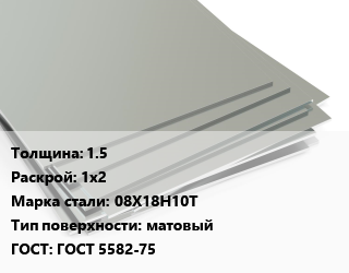 Лист нержавеющий 1.5 1х2 Сталь: 08Х18Н10Т Тип:матовый ГОСТ 5582-75