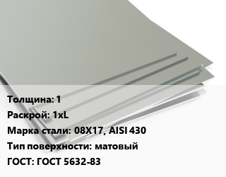 Лист нержавеющий 1 1хL Сталь: 08Х17, AISI 430 Тип:матовый ГОСТ 5632-83, х/к цена от 130 596 ₽ / т, где купить, условия доставки в Самаре и Самарской области