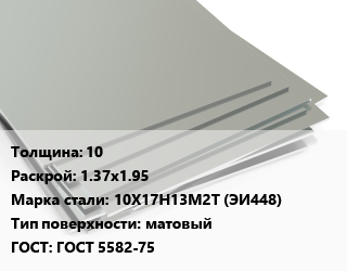 Лист нержавеющий 10 1.37х1.95 Сталь: 10Х17Н13М2Т (ЭИ448) Тип:матовый ГОСТ 5582-75